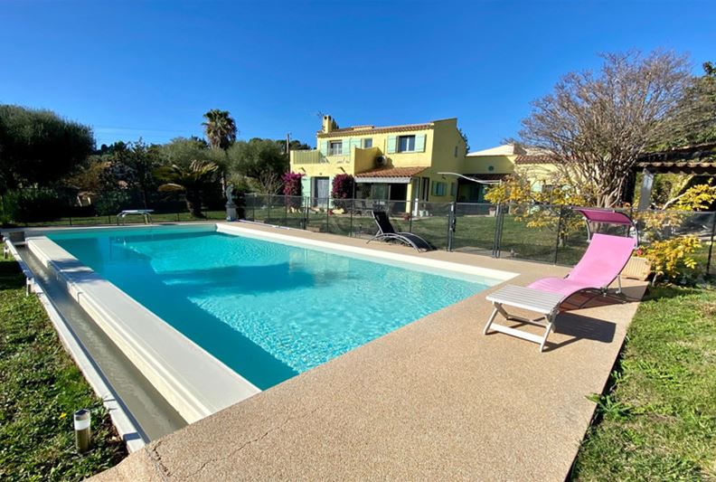 South of VENCE, in a quiet location, perfectly south-facing, Charming villa offering mostly single-level living, including an entrance hall with closets and a separate toilet, living room with fireplace, dining room opening onto a veranda, fully renovated independent fitted kitchen, a large bedroom with closet, bedroom (2) with mezzanine area, shower room, toilet. Upstairs: large bedroom (3) with closets opening onto a beautiful terrace with clear views all the way to the sea, bedroom (4) with closets, bathroom, and toilet. Stunning 10x5 m infinity pool with a beautiful paved sunbathing area, covered terrace, parking spaces, cellar, garden shed, all set on a flat plot planted with approximately 1511 m².