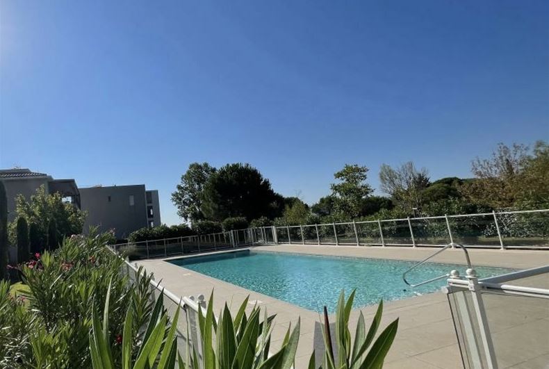 3-ROOM APARTMENT WITH SOUTH-EAST FACING TERRACE, DOUBLE GARAGE, AND POOL The apartment features a well-appointed entrance leading to a bright and spacious living room with air conditioning. The modern, semi-equipped kitchen blends seamlessly into the open-plan living area, creating a welcoming and inviting space. The living room extends onto a 13 m² southeast-facing terrace, offering unobstructed views and optimal sunshine throughout the day. The sleeping area, designed for your comfort, comprises: A master bedroom with a built-in wardrobe and en-suite shower room A second generously sized bedroom with a modern bathroom boasting elegant finishes and clean lines A separate WC for added convenience. Double garage of 33 m²