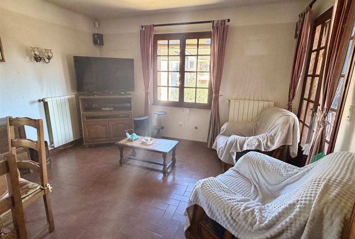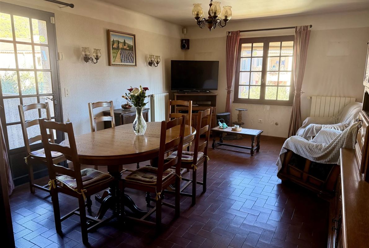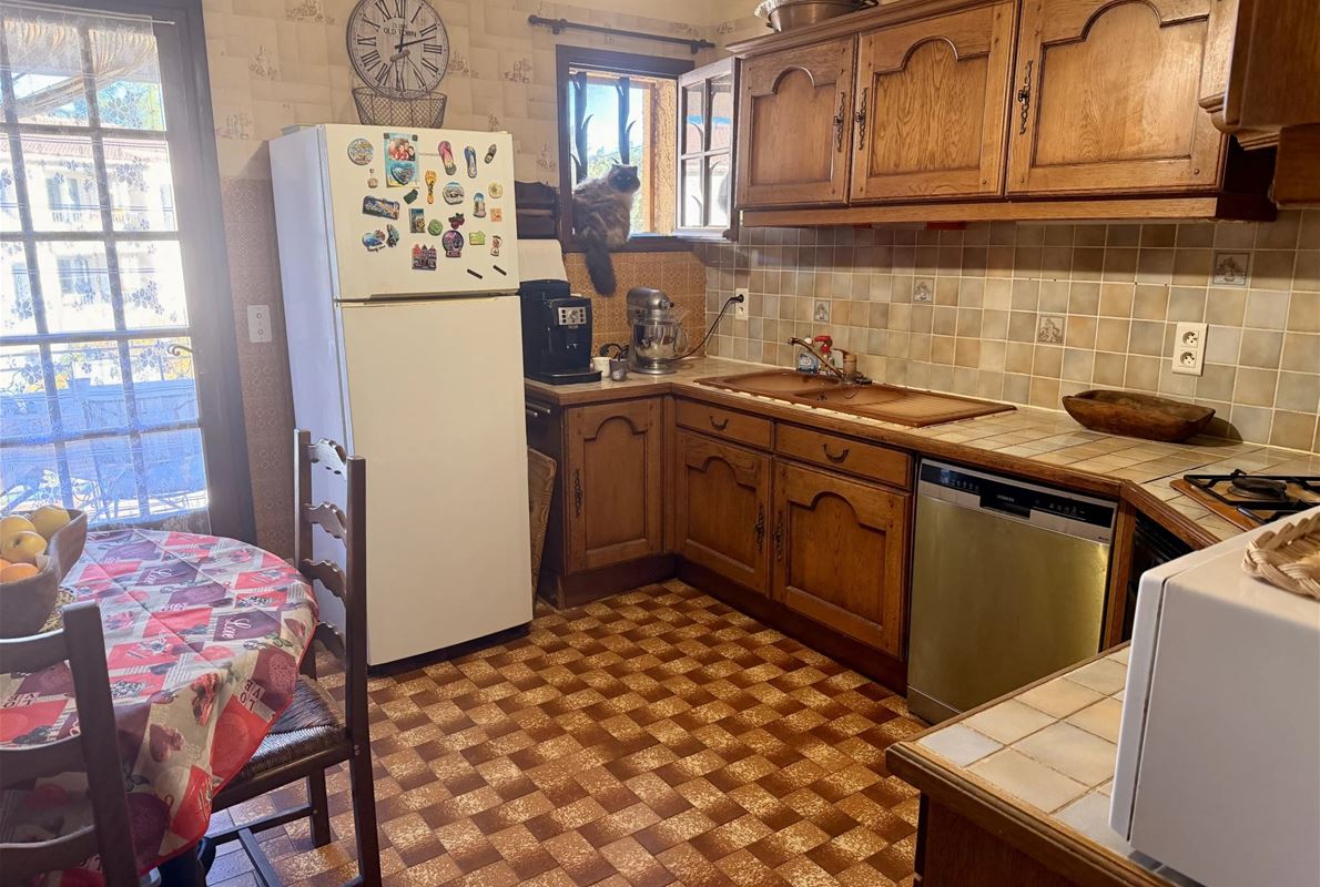 Located just a few minutes from the village center and its shops. On the ground floor, you will find: - A welcoming porch and an entrance hall with a separate wc. - A bright living room featuring an insert fireplace, providing direct access to two terraces, one of which is partially covered, perfect for enjoying sunny days. - A fitted kitchen with a practical pantry for optimal storage. - Three spacious bedrooms with built-in wardrobes, one of which also opens onto the terrace. - A shower room . The basement, with over 90 m², includes: - A garage for your vehicle. - A large workshop space for your creative or DIY projects. - A boiler room. - A cellar for storage.