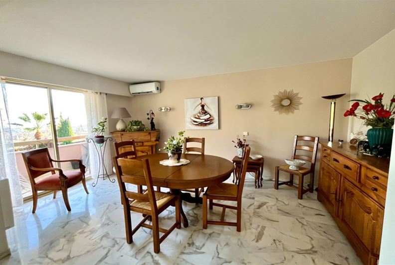 VENCE, close to the city center, beautiful unobstructed view all the way to the sea and peaceful, Spacious apartment on the raised ground floor, including entrance hall, double living room, independent equipped kitchen, two large bedrooms each with their own shower room – Italian shower/ WC, WC, dressing room, and closets. Terrace, 2 cellars, and 2 private parking spaces. - Possible to divide into 3 rooms + independent studio - - Generous spaces, high-quality finishes -