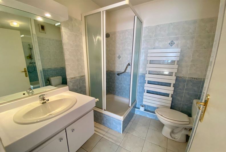 VENCE, downtown, in a high-end residence with a swimming pool, tennis courts, and a caretaker, spacious apartment comprising four main rooms converted into three: entrance, large corner double living room, separate equipped kitchen, beautiful bedroom with its own shower room/WC, and a second bedroom, bathroom, WC, and plenty of closets. Large corner terrace and double garage of 30 m².