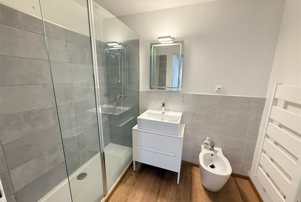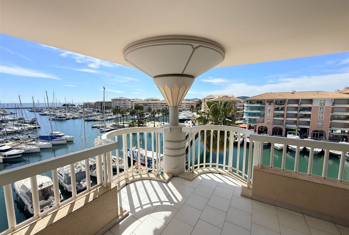 EXCEPTIONAL PORT VIEW for this 72m2 corner 2-bedroom apartment on the top floor (elevator) comprising an entrance hall with built-in wardrobe, a kitchen to be fitted and equipped opening onto the living room, a dressing room/pantry, two bedrooms, a shower room, and a separate WC. Terrace. Indoor parking.