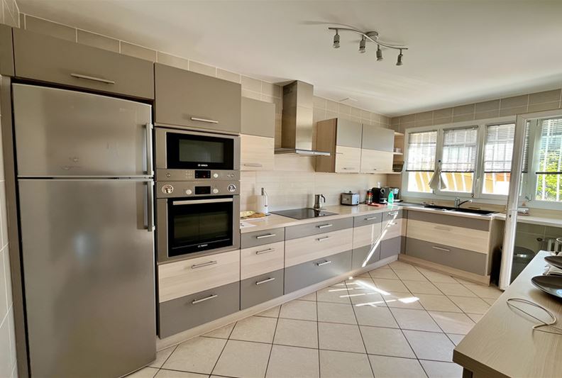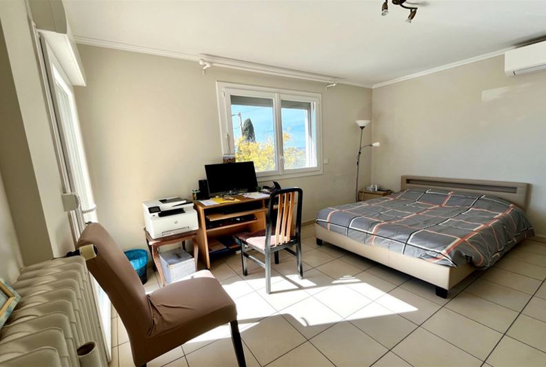VENCE, close to the town center, in an elevated position with an unobstructed view extending to the sea. The villa is laid out as follows: On the main level, entrance, living room with fireplace, separate fitted kitchen, hallway with independent toilet and hand basin, two bedrooms with built-in wardrobes, a shower room, and a dressing room. A 21 m² terrace with a lovely clear view of the sea, plus a summer kitchen. On the lower level, two bedrooms with built-in wardrobes, a bathroom, a toilet, a dressing room, a TV lounge, and a laundry room. A cellar, a storage room, a workshop, and a boiler room. Outside, a large swimming pool. An annex with a toilet and storage area. A carport for two vehicles.
