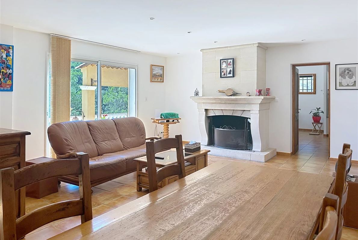 Just 5 km from thevillage of Lorgues. The property features an open kitchen and a bright living room that opens onto a large 70 m² terrace with stunning panoramic views. There are two comfortable bedrooms, each with its own private bathroom. In addition, there are four separate rooms with private bathrooms and private entrances, as well as two independent studios — perfect for quietly hosting family, friends, or other guests. A heated swimming pool (10 x 5 m) with sun terrace, pool house, and semi-professional outdoor kitchen Two jacuzzis, a sauna, and several relaxing seating areas scattered throughout the grounds A cozy room for relaxation or exercise Private access to the river with a pontoon and canoes