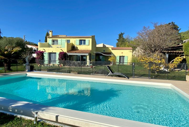 South of VENCE, in a quiet location, perfectly south-facing, Charming villa offering mostly single-level living, including an entrance hall with closets and a separate toilet, living room with fireplace, dining room opening onto a veranda, fully renovated independent fitted kitchen, a large bedroom with closet, bedroom (2) with mezzanine area, shower room, toilet. Upstairs: large bedroom (3) with closets opening onto a beautiful terrace with clear views all the way to the sea, bedroom (4) with closets, bathroom, and toilet. Stunning 10x5 m infinity pool with a beautiful paved sunbathing area, covered terrace, parking spaces, cellar, garden shed, all set on a flat plot planted with approximately 1511 m².