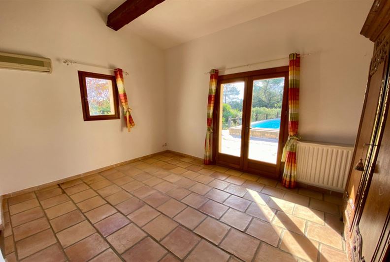 To the west of the village of Tourrettes sur Loup, in absolute tranquility, set in a green haven, a charming Provençal-style home of traditional and high-quality construction, mostly on one level, comprising: entrance hall, double living room with fireplace, spacious open-plan fitted kitchen, three bedrooms each with closets and shower room, full bathroom and separate toilet. Upstairs: master bedroom with closets, shower room/toilet, opening onto a rooftop terrace with an unobstructed sea view. Large swimming pool, covered terrace, double garage, parking spaces, all set on a landscaped plot of approximately 3100 m².