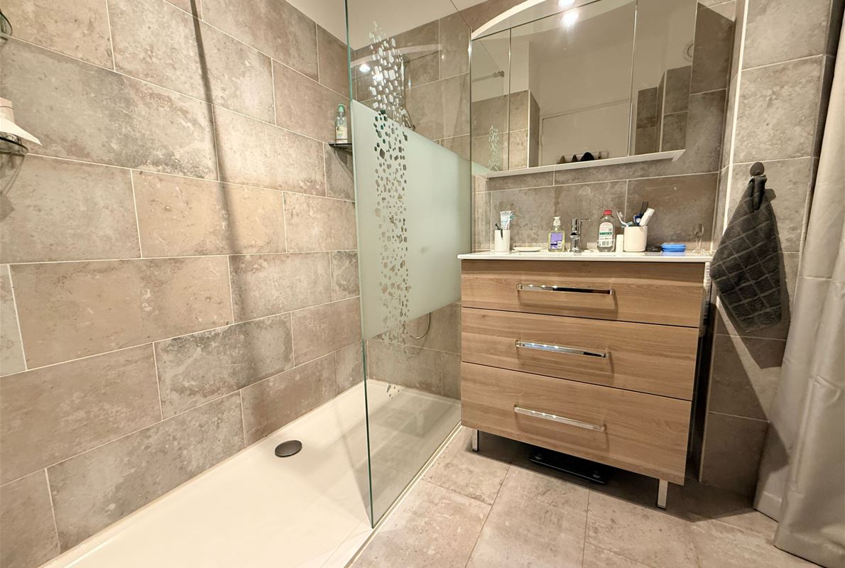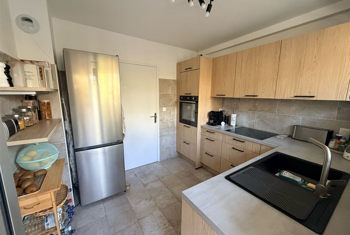 n a small residence in Port Fréjus, a 3-room apartment of approximately 72m2 comprising an entrance hall with built-in wardrobe, a fitted kitchen opening onto a loggia, a living room opening onto a terrace, two bedrooms, a shower room, and a separate WC. Private parking space. Garage.
